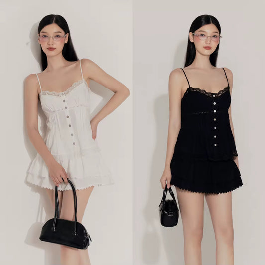 Lace buttons flowy top