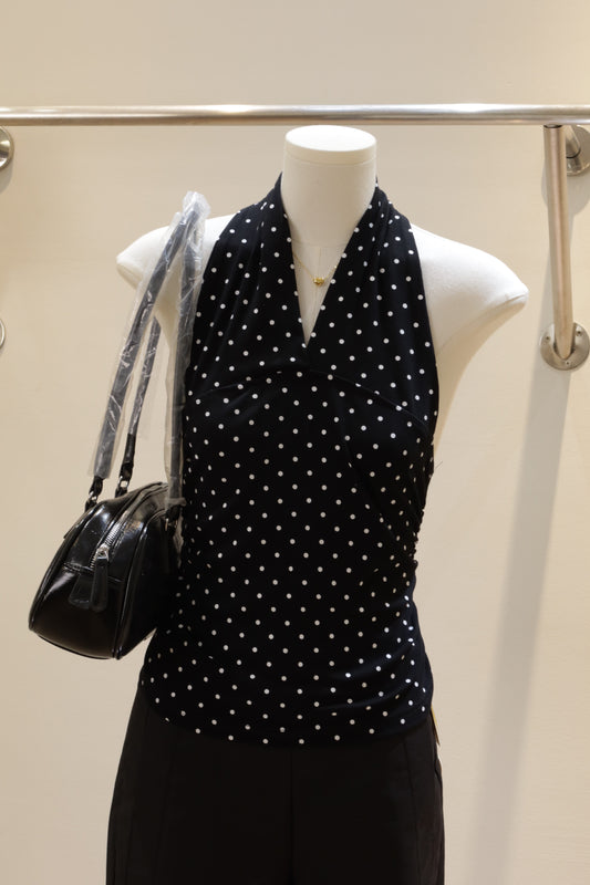 Sold outBlack polkadot halter top