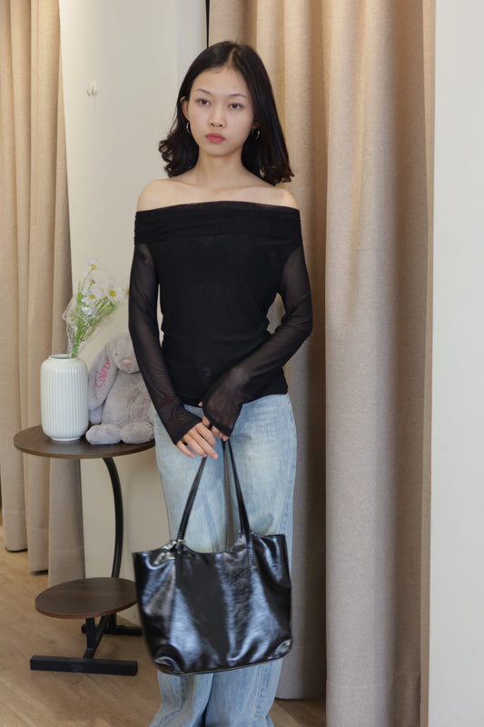 Sold outblack mesh long sleeve off shoulder