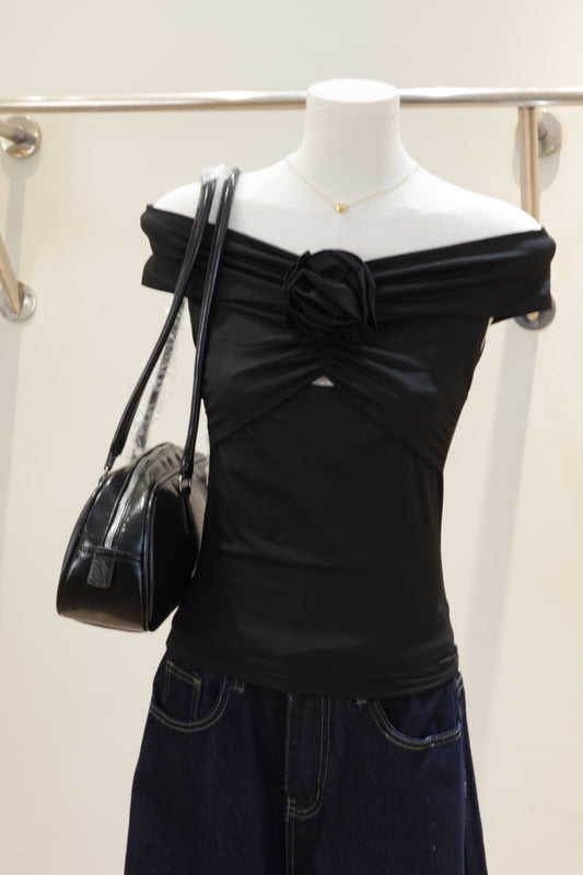 Sold outBlack rose off shoulder top