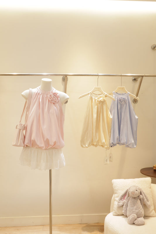 Satin side flower puffy top