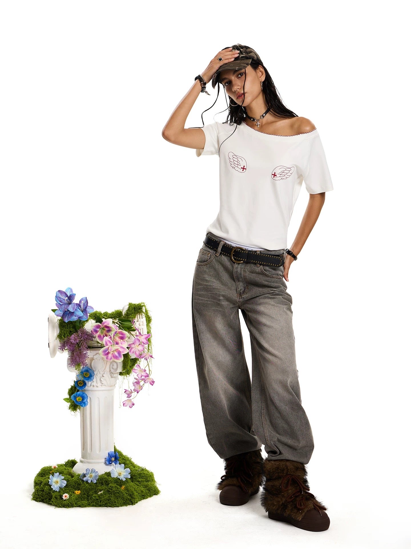 ANGEL GRAPHIC HALF SHOULDER TOP