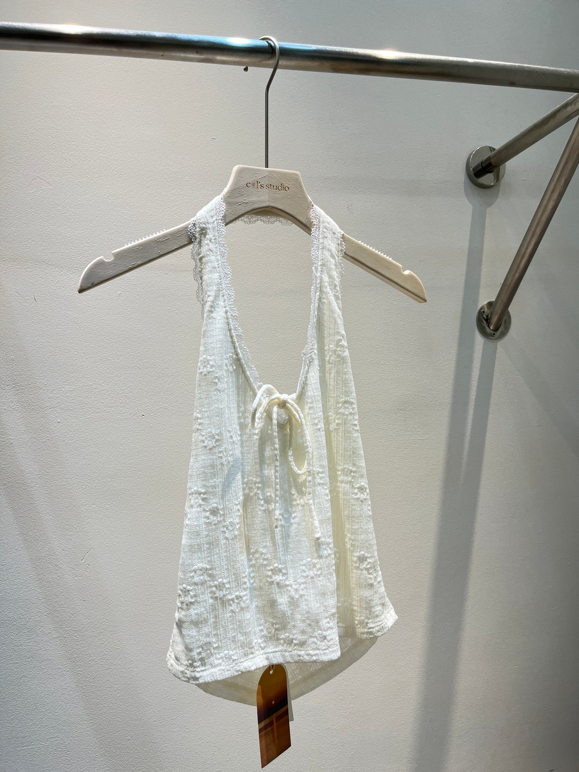 BACKLESS HALTER RIBBON TOP