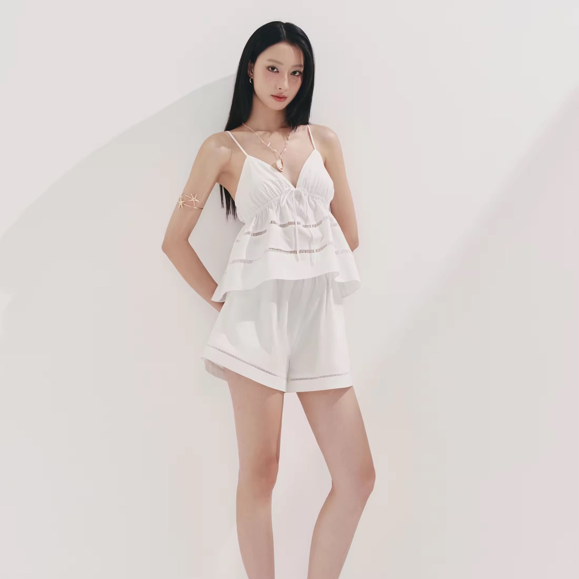 Khaki white flowy top